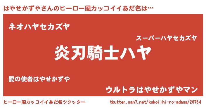 | 男性向けラノベタイトル風あだ名 | 『うちのはやせかずやが世界を掌握している!』 |