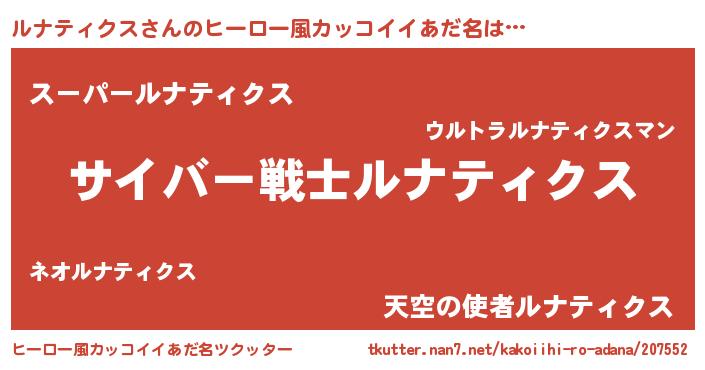 | 意味不明あだ名 | 『自称ルナティクス』 |