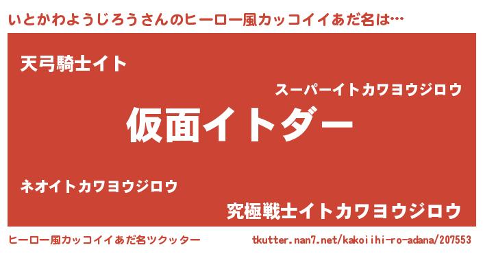 | 男性向けラノベタイトル風あだ名 | 『うちのいとかわようじろうが世界を掌握している!』 |
