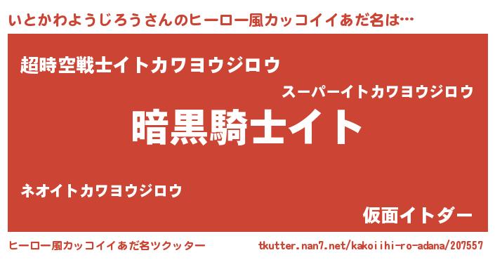| 胡散臭い通販商品みたいなあだ名 | 『信頼と実績のサプリメント…その名も「いとかわようじろう」』 |