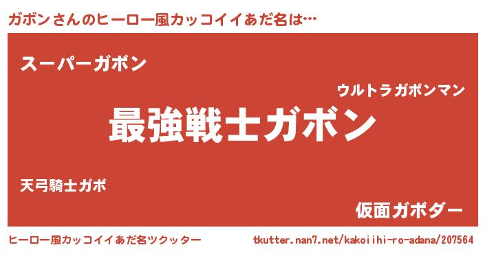 | 男性向けラノベタイトル風あだ名 | 『Re:ガボンから始める異世界生活』 |