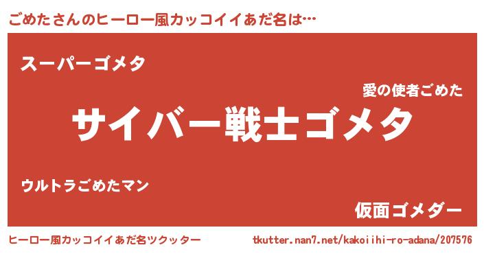 | 女子向けラノベタイトル風あだ名 | 『闇のごめた』『ごめた姫と円卓の騎士』 |
