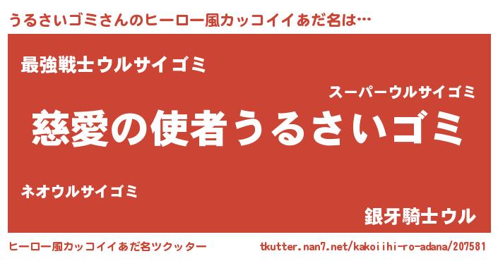 | 男性向けラノベタイトル風あだ名 | 『ノーゲーム・ノーウルサイゴミ』 |