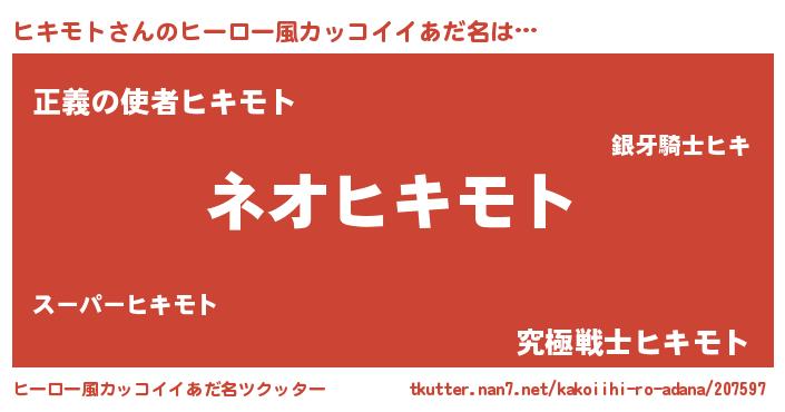 | 意味不明あだ名 | 『永久保存ヒキモト』『自称ヒキモト』 |