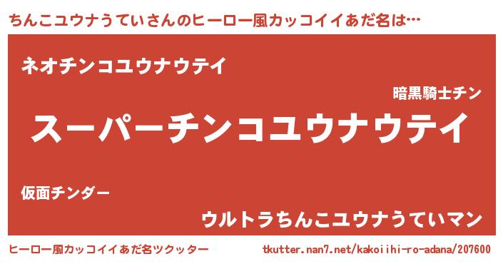 | 胡散臭い通販商品みたいなあだ名 | 『必ず成功する霊験あらたかなお札…その名も「ちんこユウナうてい」』 |