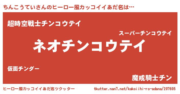 | ヘコむあだ名 | 『ちんこうてい(小並感)』『ちんを』 |