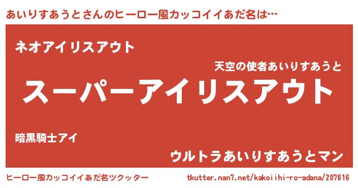 | ヘコむあだ名 | 『あいもー』『あいりすあうと(笑)』 |