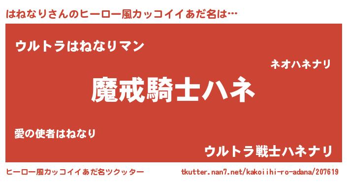 | ポケモン風あだ名 | 『ハネゴンZ』『ヒハネナリ』 |