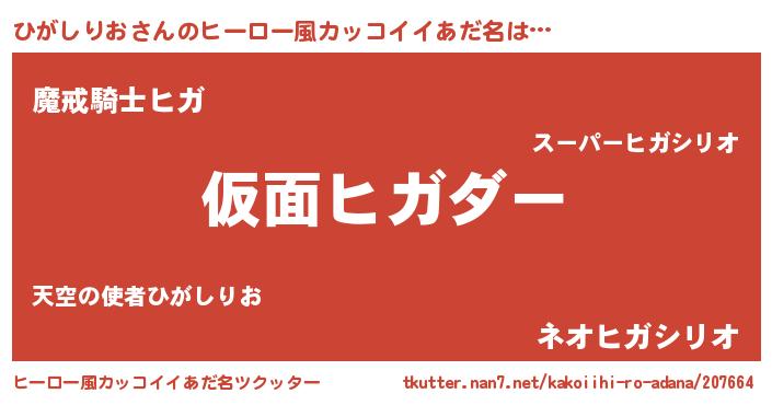 | 意味不明あだ名 | 『住所不定無職ひがしりお(43歳)』 |