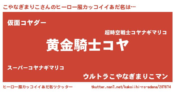 | 胡散臭い通販商品みたいなあだ名 | 『信頼と実績のサプリメント…その名も「こやなぎまりこ」』 |