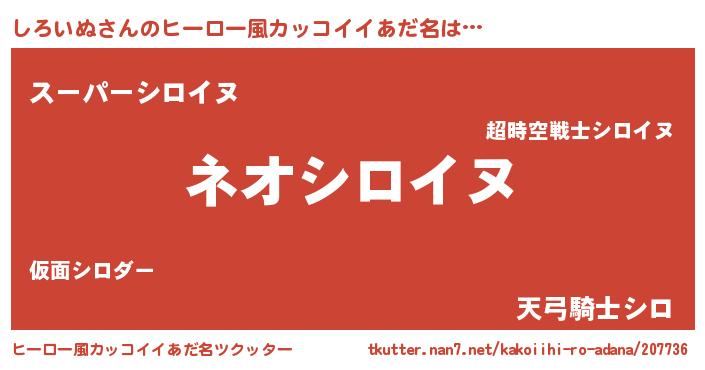 | 男性向けラノベタイトル風あだ名 | 『しろいぬという概念が存在しない退屈な世界 』 |