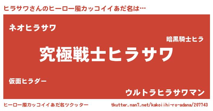 | 男性向けラノベタイトル風あだ名 | 『うちのヒラサワが世界を掌握している!』 |