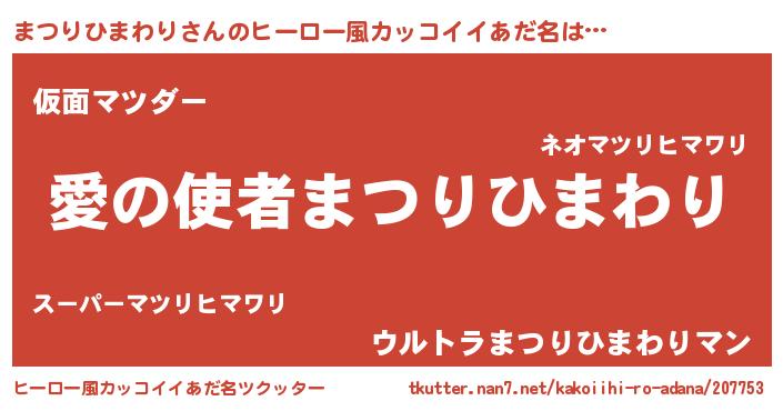 | 男性向けラノベタイトル風あだ名 | 『おまえをオタクにしてやるから、俺をまつりひまわりにしてくれ! 』 |