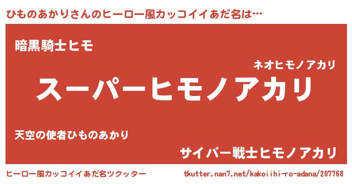 | 女子向けラノベタイトル風あだ名 | 『ひものあかりの玉の輿計画!』 |