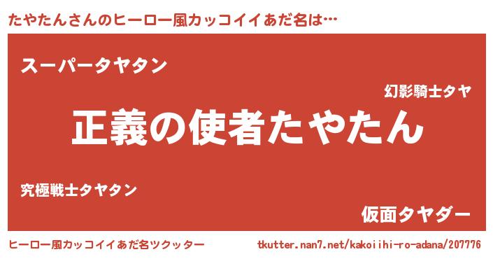 | 男性向けラノベタイトル風あだ名 | 『おまえをオタクにしてやるから、俺をたやたんにしてくれ! 』 |