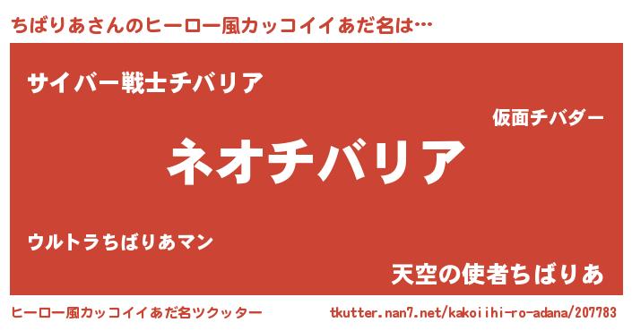 | 意味不明あだ名 | 『永久保存ちばりあ』『自称ちばりあ』 |