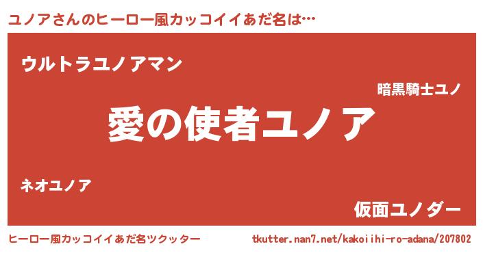 | 女子向けラノベタイトル風あだ名 | 『ユノア恋絵巻』『ユノアの婚約者』 |