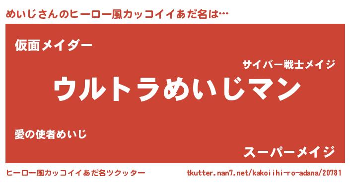 | 意味不明あだ名 | 『めいじフォーエバー』『ペロリンめいじ』 |