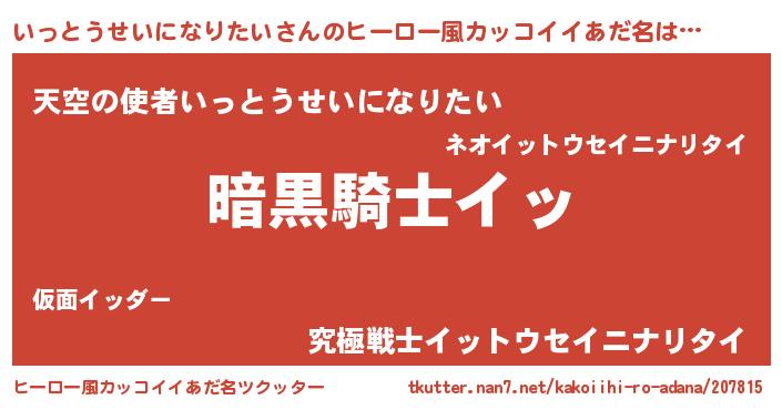| 胡散臭い通販商品みたいなあだ名 | 『信頼と実績のペンダント…その名も「いっとうせいになりたい」』 |