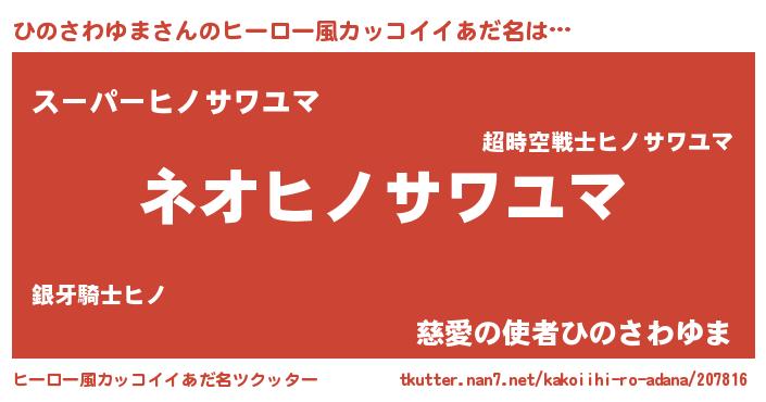 | 意味不明あだ名 | 『永久保存ひのさわゆま』 |