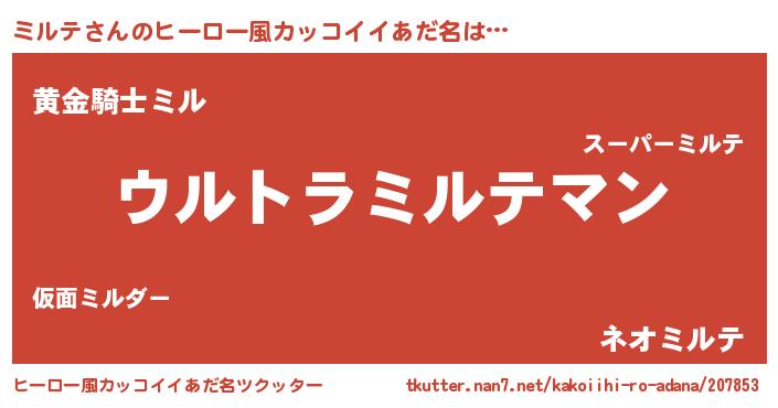| 意味不明あだ名 | 『ミルテフォーエバー』『永久保存ミルテ』 |