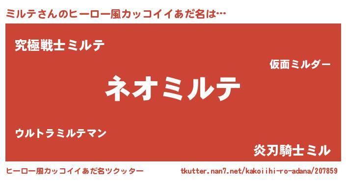 | ヘコむあだ名 | 『ミルテ(遠い目)』『ミルっちょ』 |