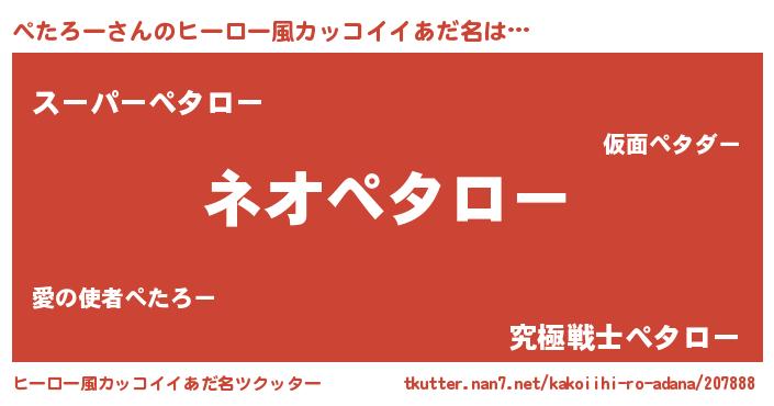 | 男性向けラノベタイトル風あだ名 | 『ぺたろーに滅ぼされるだけの簡単なお仕事です』 |
