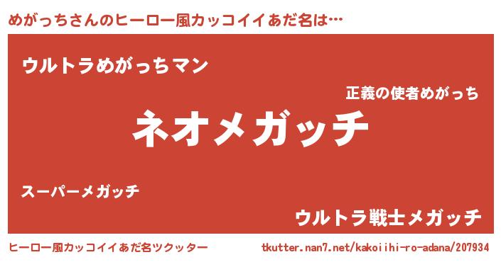| 胡散臭い通販商品みたいなあだ名 | 『絶対に幸福をもたらす水素水…その名も「めがっち」』 |