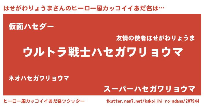 | 意味不明あだ名 | 『自称はせがわりょうま』 |