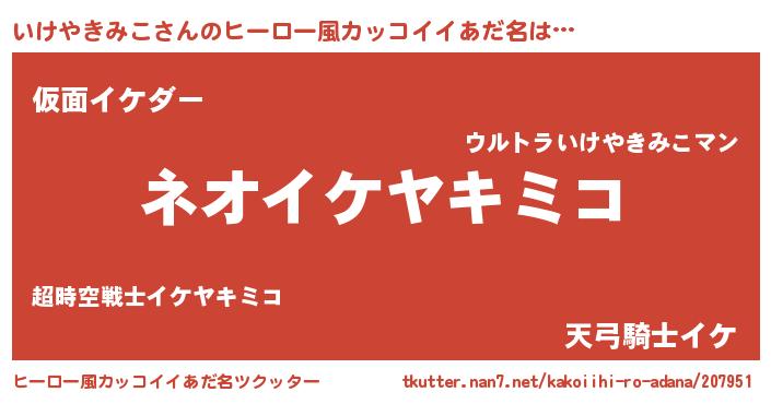 いけやきみこさんのヒーロー風カッコイイあだ名をツクッター!
