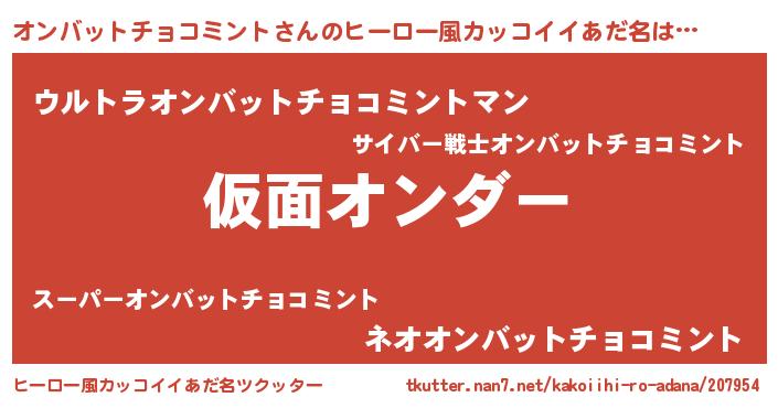 | 欧米人風あだ名 | 『ダレノガレオンバットチョコミント』 |