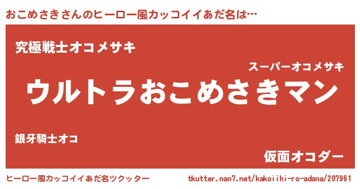 | ファンタジー風あだ名 | 『エターナルオコメサキー』『ゼオコトゥ』 |