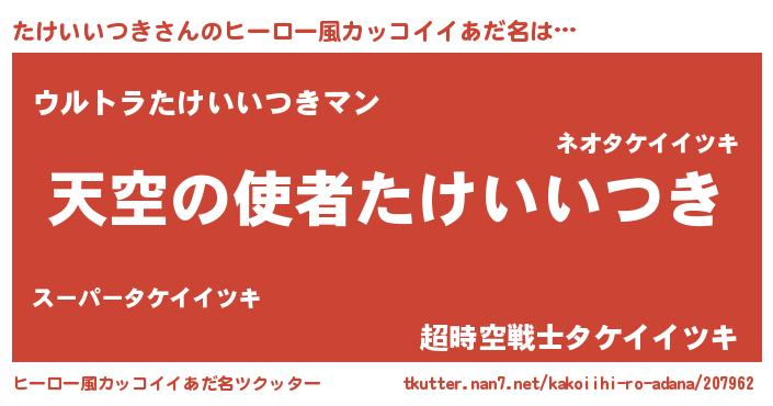 | 男性向けラノベタイトル風あだ名 | 『たけいいつきに滅ぼされるだけの簡単なお仕事です』 |