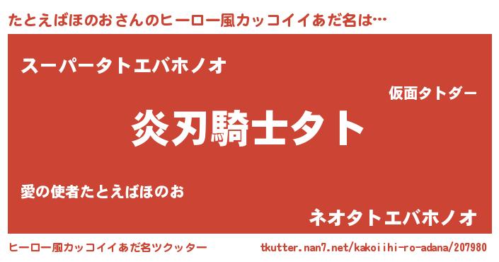 | ポケモン風あだ名 | 『ヒタトエバホノオ』『タトキング』 |