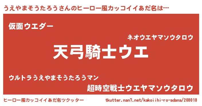 | 男性向けラノベタイトル風あだ名 | 『うちのうえやまそうたろうが世界を掌握している!』 |