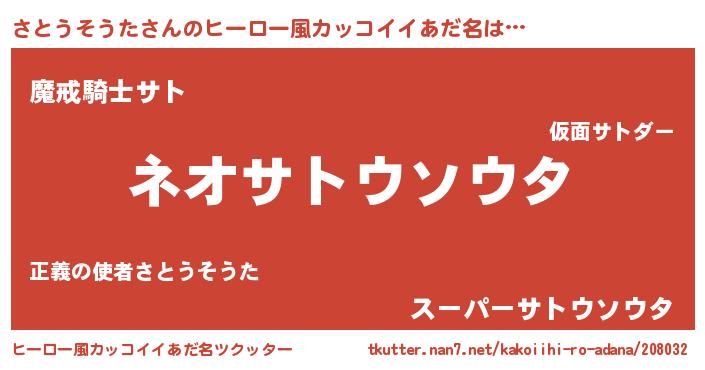 | 意味不明あだ名 | 『永久保存さとうそうた』 |