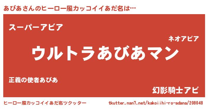 | ヘコむあだ名 | 『なまこ酢』『あびふぇ~』『あびを』 |