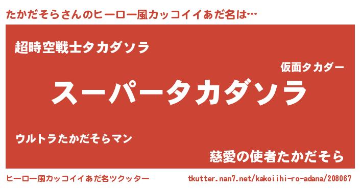 | 男性向けラノベタイトル風あだ名 | 『タカダソラアートオンライン』 |