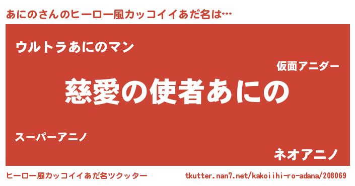 | 男性向けラノベタイトル風あだ名 | 『あにのに滅ぼされるだけの簡単なお仕事です』 |