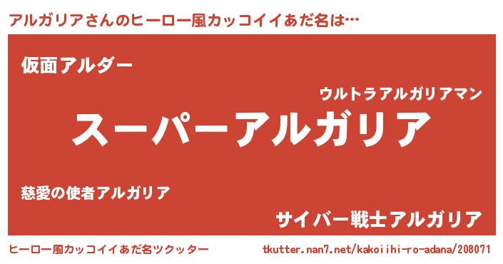 | 意味不明あだ名 | 『ペロリンアルガリア』『自称アルガリア』 |