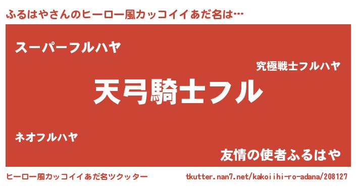 | 男性向けラノベタイトル風あだ名 | 『ふるはやの嫁は女の子じゃないと思った?』 |