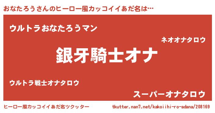 | 男性向けラノベタイトル風あだ名 | 『おなたろうの嫁は女の子じゃないと思った?』 |