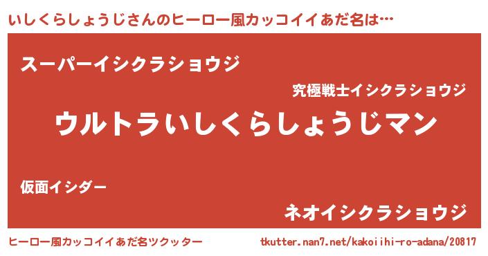 | 男性向けラノベタイトル風あだ名 | 『転生したらいしくらしょうじだった件』 |