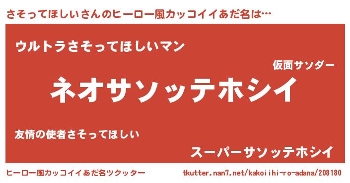 さそってほしいさんのヒーロー風カッコイイあだ名をツクッター!