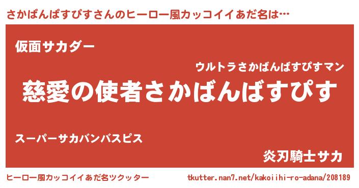 | 伝説のあだ名 | 『救世主となる技術者さかばんばすぴす』 |