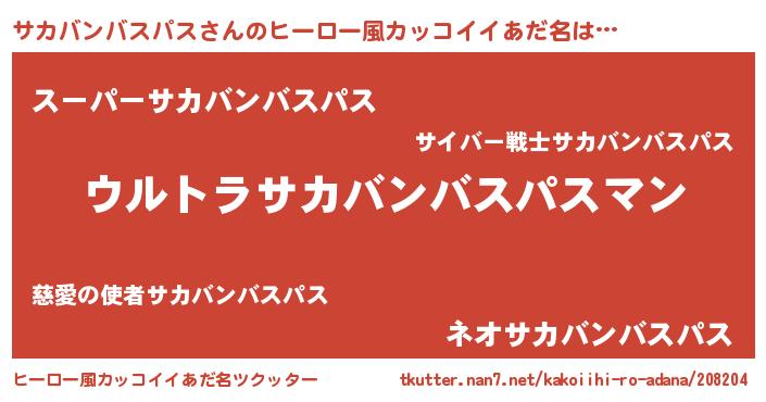 | ファンタジー風あだ名 | 『エターナルサカバンバスパスー』 |