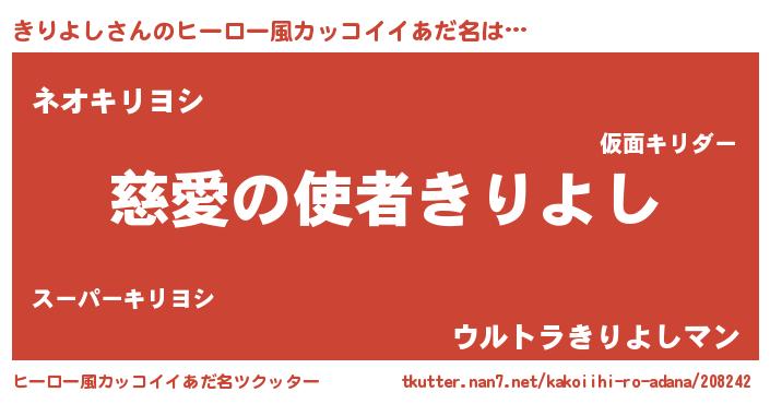 | 男性向けラノベタイトル風あだ名 | 『うちのきりよしが世界を掌握している!』 |