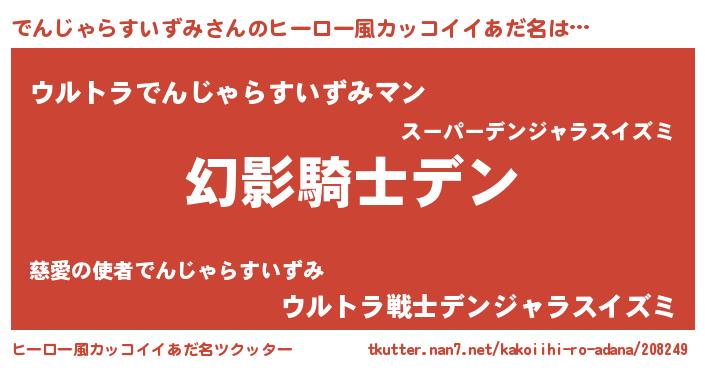 | 女子向けラノベタイトル風あだ名 | 『でんじゃらすいずみの玉の輿計画!』 |