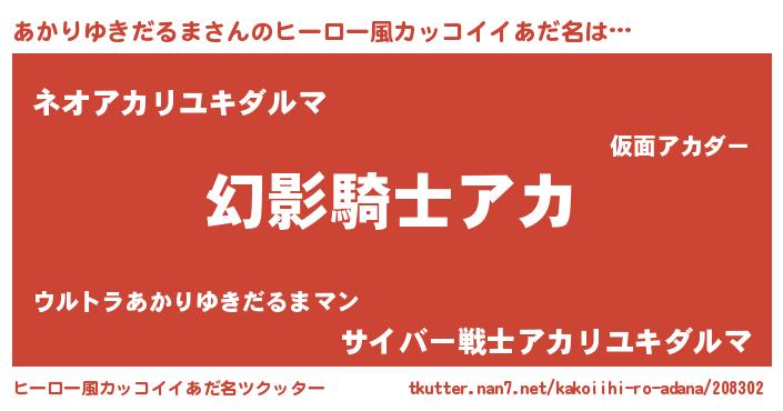 | ポケモン風あだ名 | 『ヒアカリユキダルマ』『ゼニアカ』 |