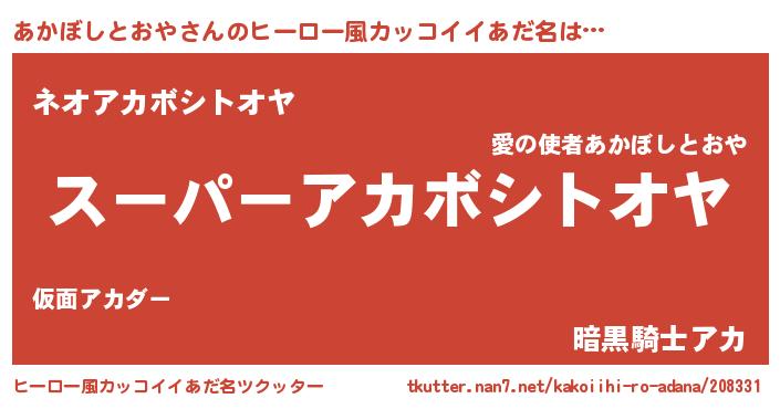 | 男性向けラノベタイトル風あだ名 | 『アカボシトオヤアートオンライン』 |